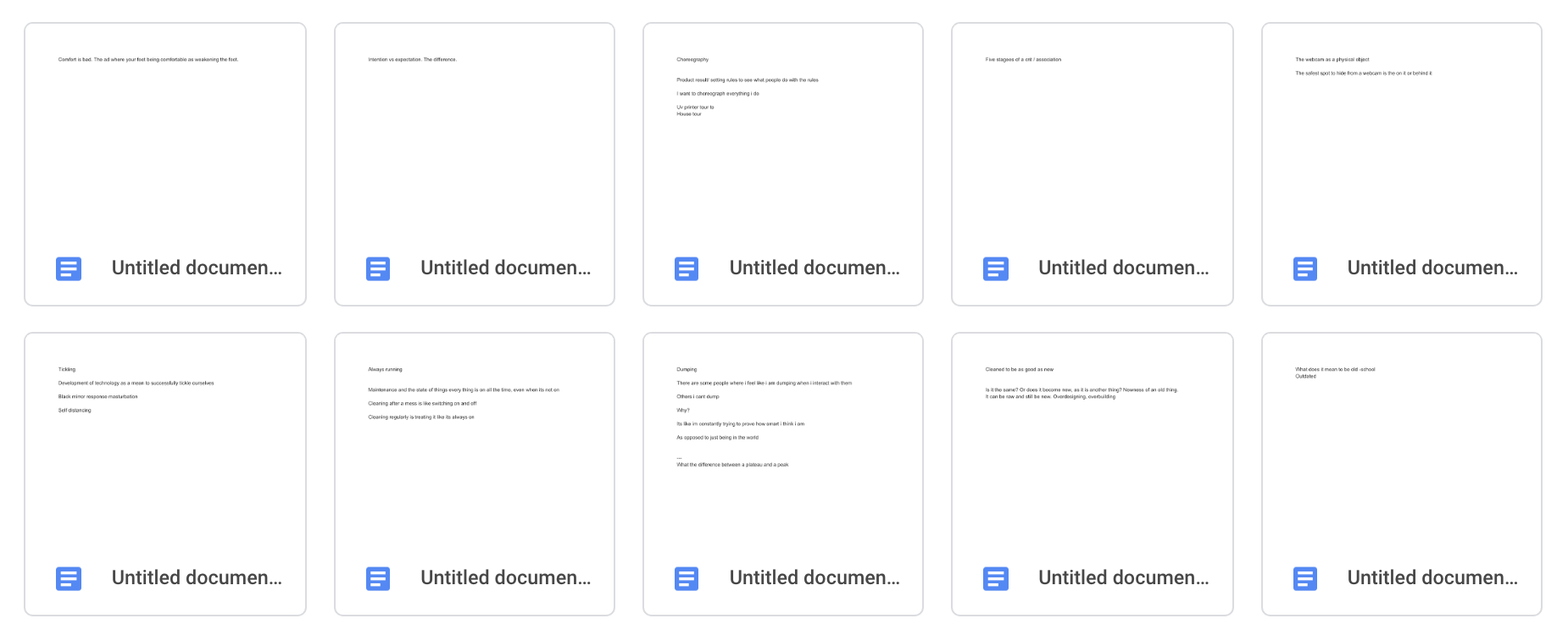 - Choreography. Product result / setting rules to see what people do with the rules. I want to choreograph everything I do, from a Uv printer tour to a House tour.